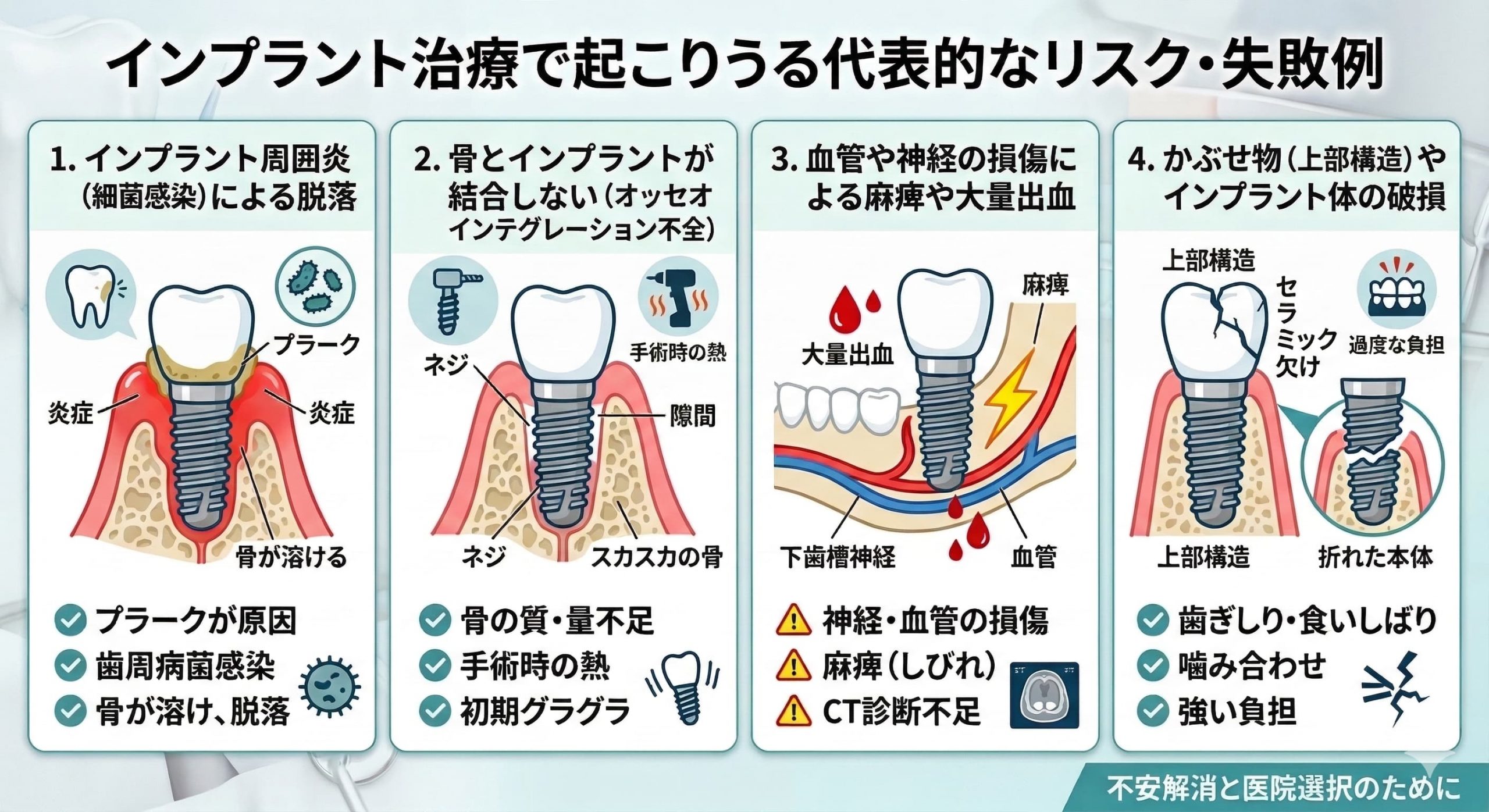 1. インプラント治療で起こりうる代表的なリスク・失敗例とは?