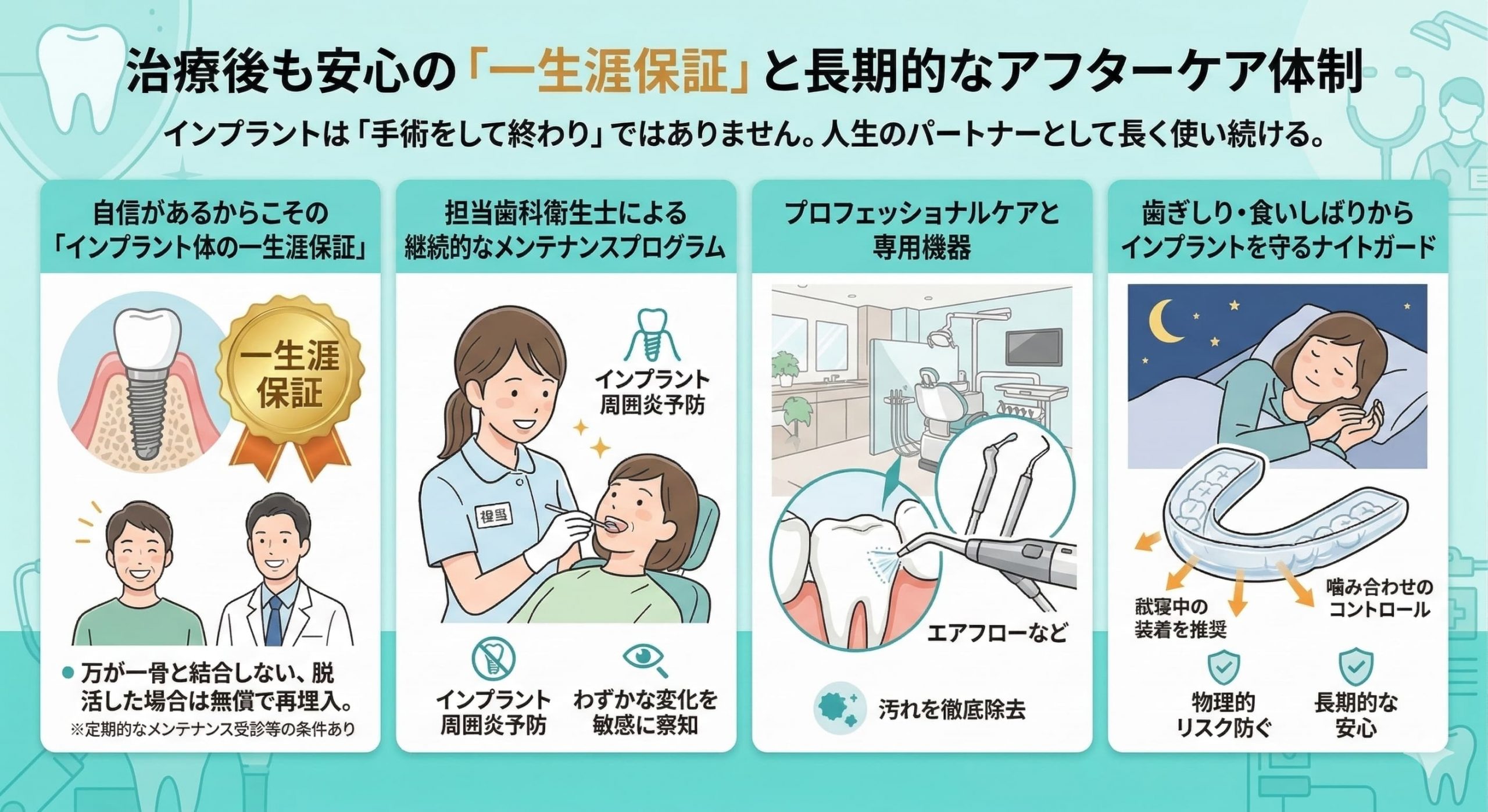 自信があるからこその「インプラント体の一生涯保証」