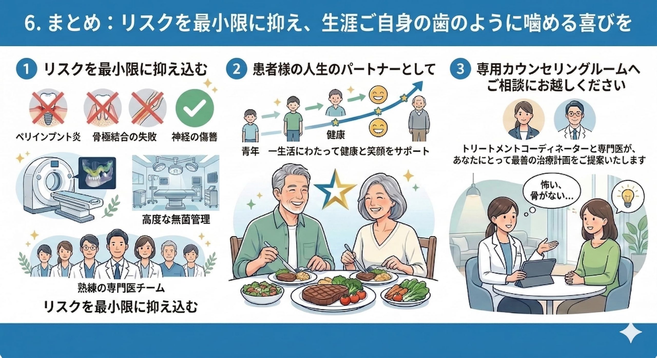 6. まとめ:リスクを最小限に抑え、生涯ご自身の歯のように噛める喜びを