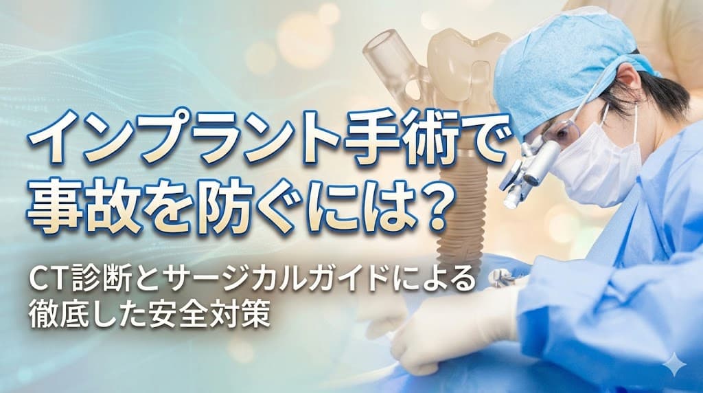 インプラント治療における神経損傷などの事故は、決して「運が悪かった」では済まされない重大な問題です。しかし、歯科用CTによる精密診断、サージカルガイドを用いた正確な埋入、そして専門医と麻酔医によるチーム医療を徹底すれば、そのリスクは限りなくゼロに近づけることができます。
