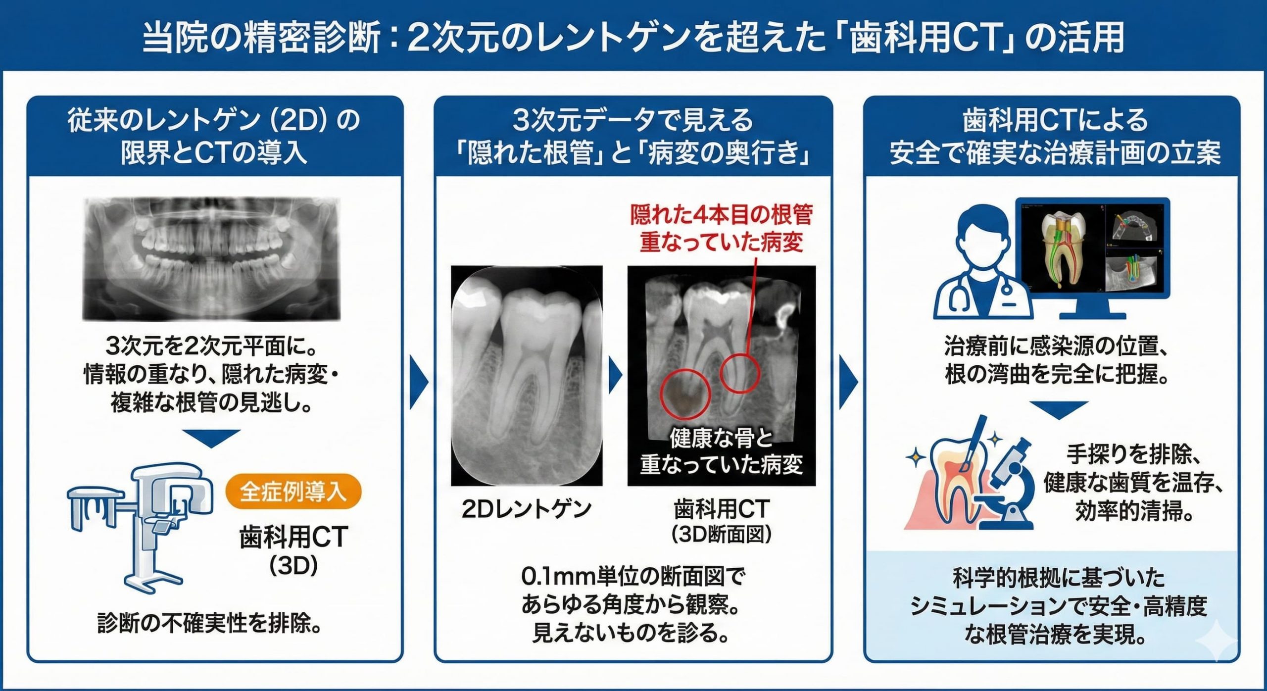 3. 当院の精密診断:2次元のレントゲンを超えた「歯科用CT」の活用