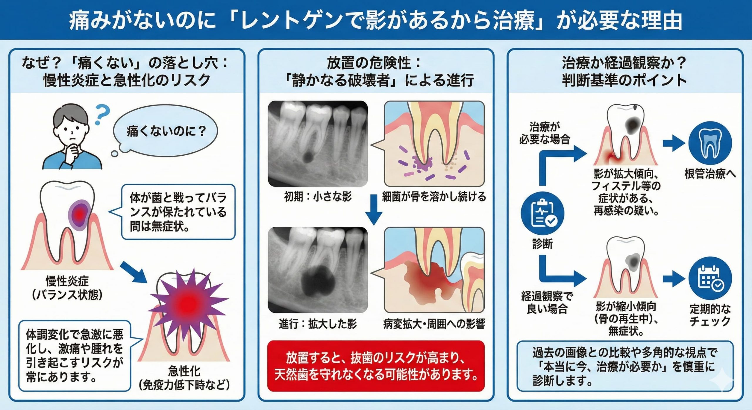 2. 痛みがないのに「レントゲンで影があるから治療」が必要な理由