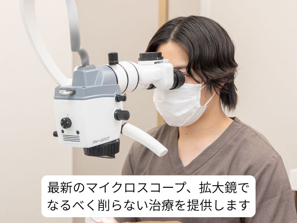 治療中は拡大鏡・マイクロスコープを使用し、削る範囲を最小限に抑える低侵襲治療を徹底。