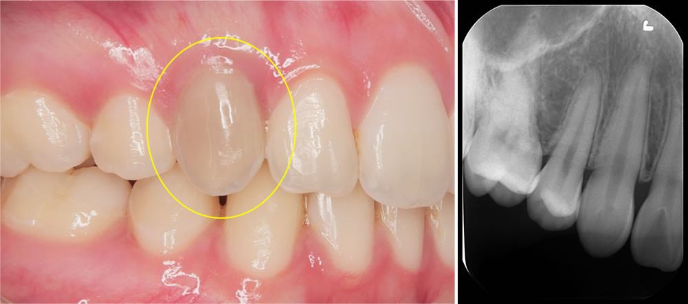 こちらの患者さんは、右上の前歯の色が黒くなってきたことを主訴に来院されました。