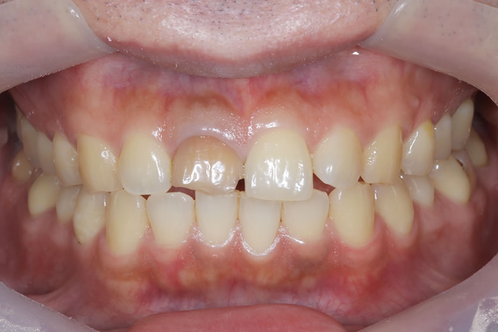こちらの患者さまは、右上の前歯のトラブルをきっかけに、強い不安を抱えて来院されました。