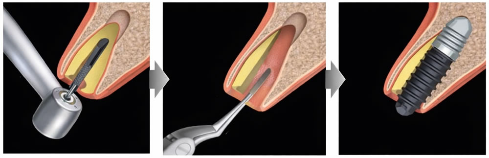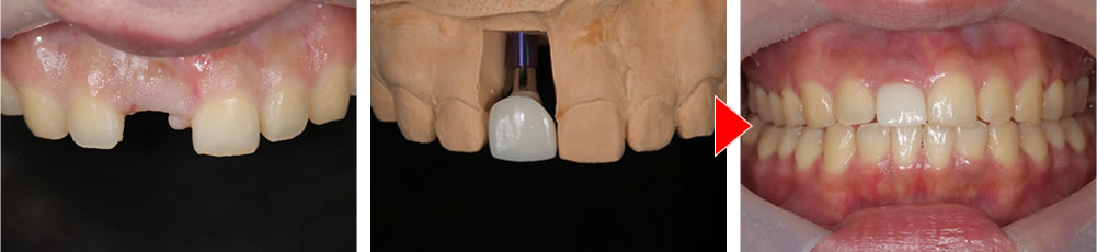 次に行ったのが、前歯のインプラント治療です。この症例では、「ソケットシールドテクニック」という方法を選択しました。