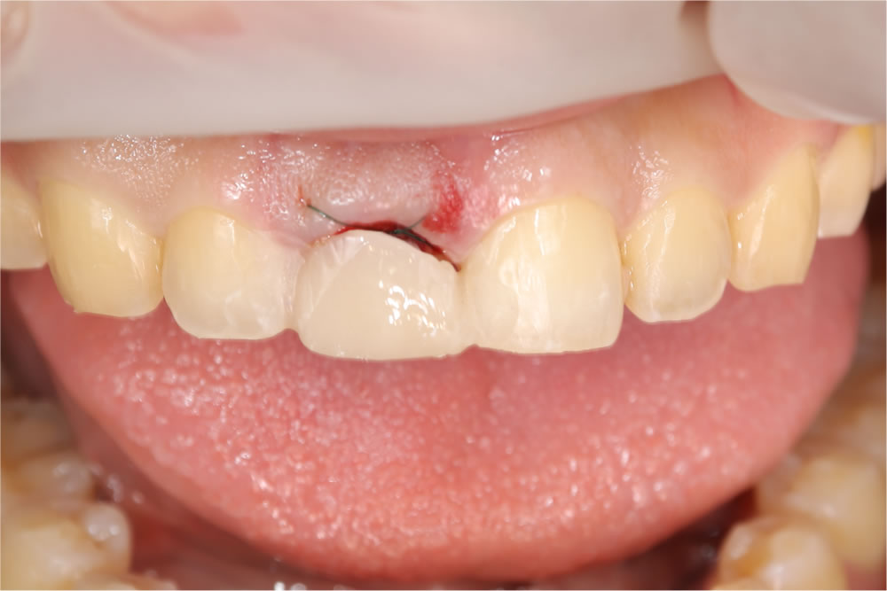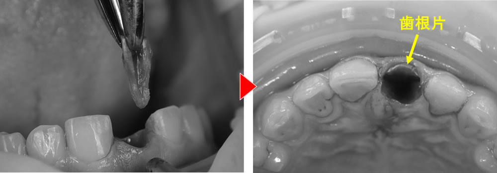 ソケットシールドテクニックを用いて当該歯を部分的に抜歯しました。
