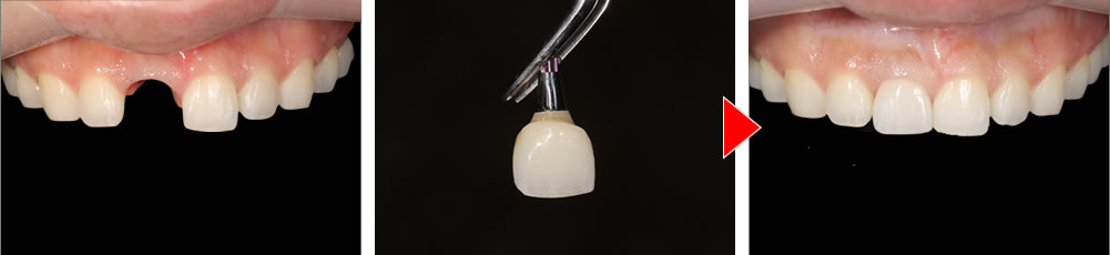 破折して変色した前歯を抜歯即時インプラントで治療した症例