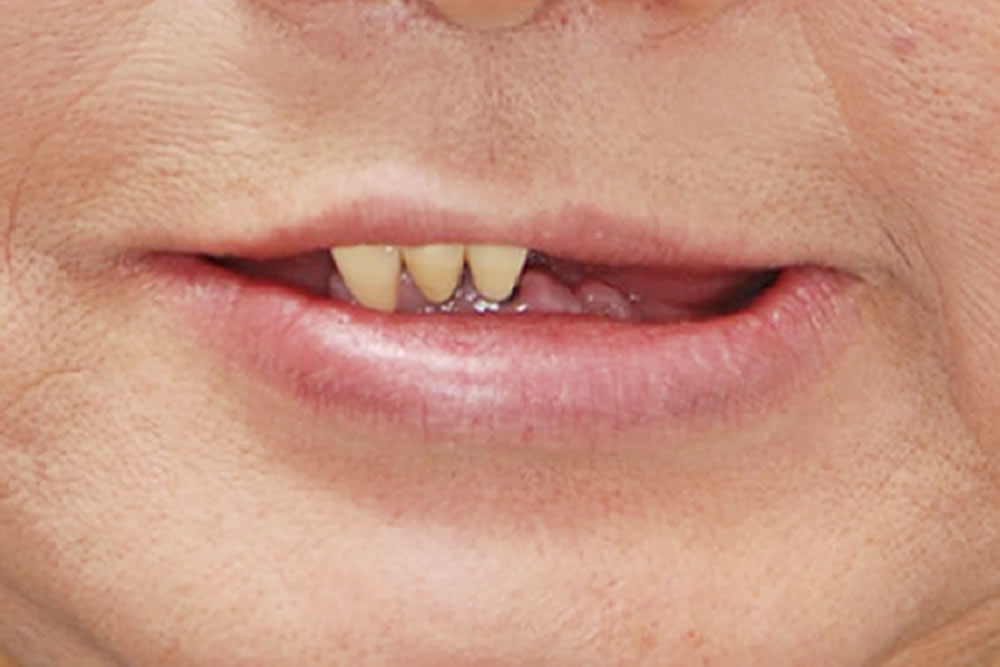 年月とともに少しずつ歯が抜けていき、先日、下の前歯が折れてしまったことをきっかけに、他院で『もう上下とも総入れ歯しかない』と言われたそうです。
