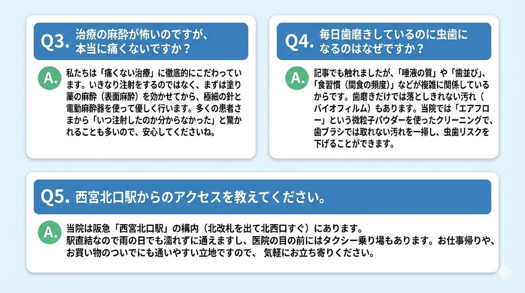Q3. 治療の麻酔が怖いのですが、本当に痛くないですか?