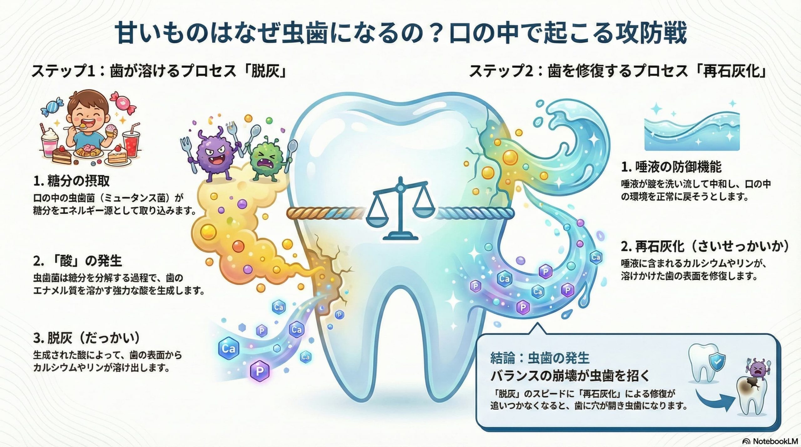 1. 甘い物を食べると、なぜ歯に穴が開くのか?