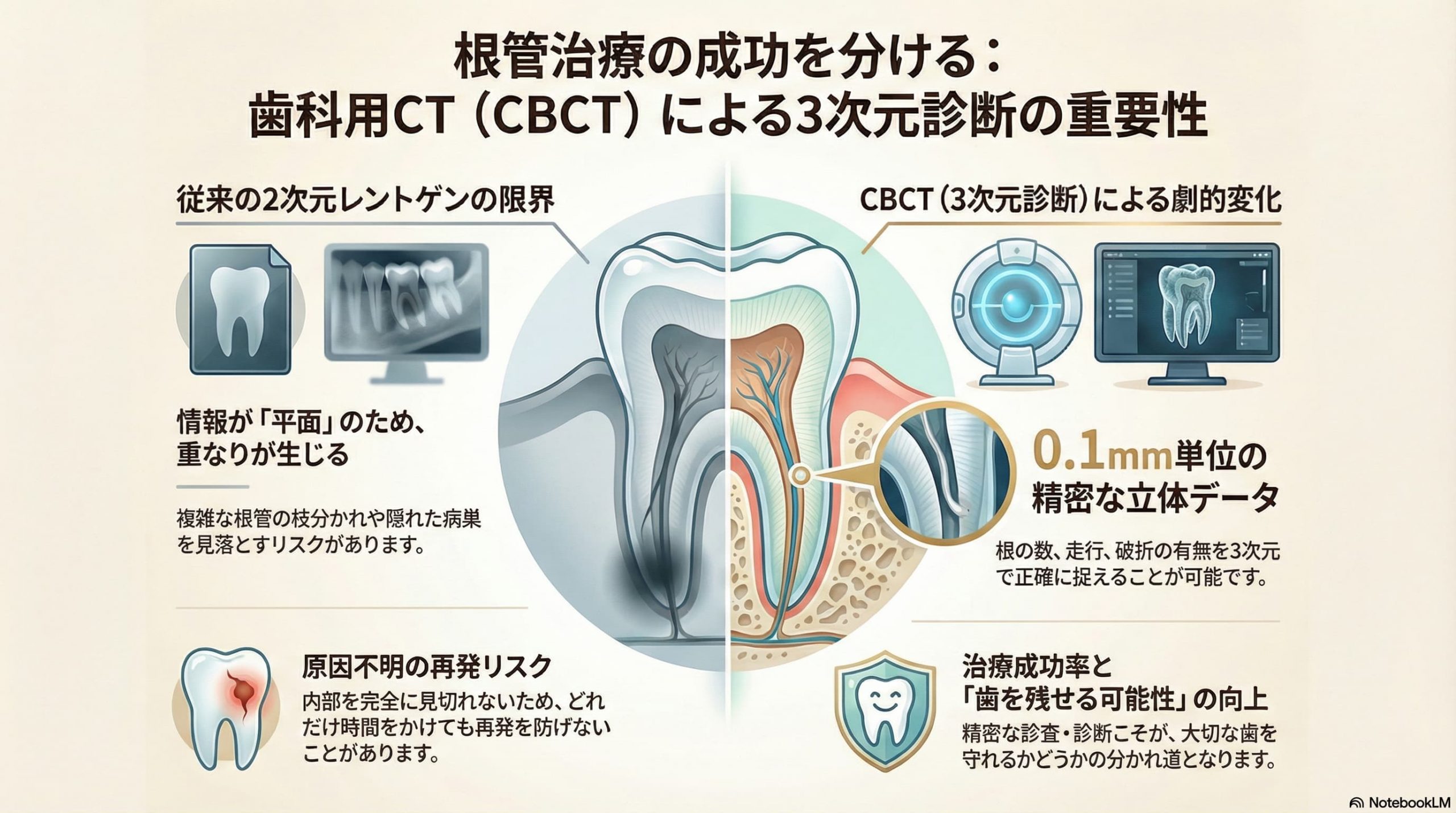 根管治療にCTはなぜ必要不可欠?成功率を飛躍させる3次元診断と当院の抜歯回避への取り組み