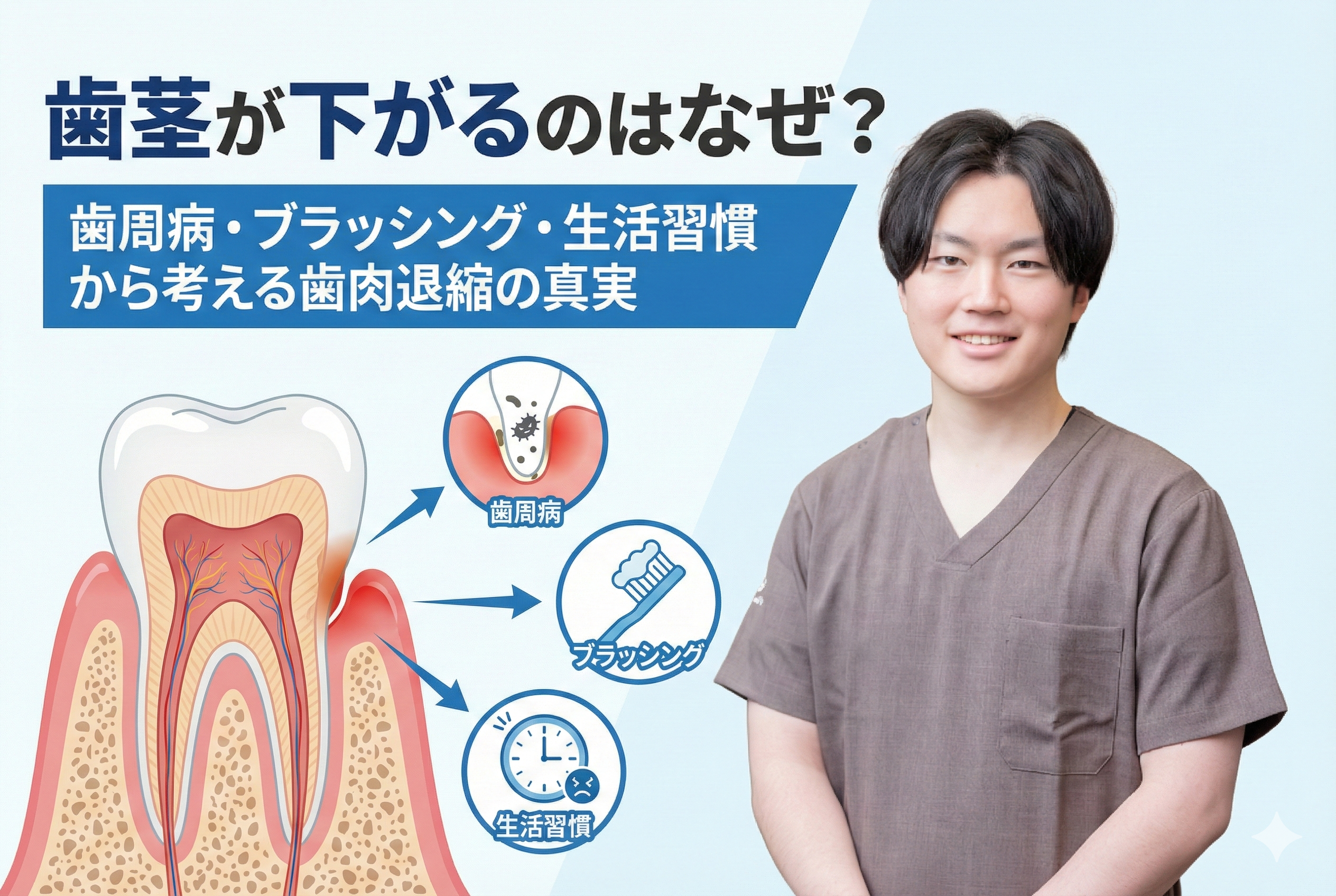 歯茎が下がるのはなぜ?歯周病・ブラッシング・生活習慣から考える歯肉退縮の真実