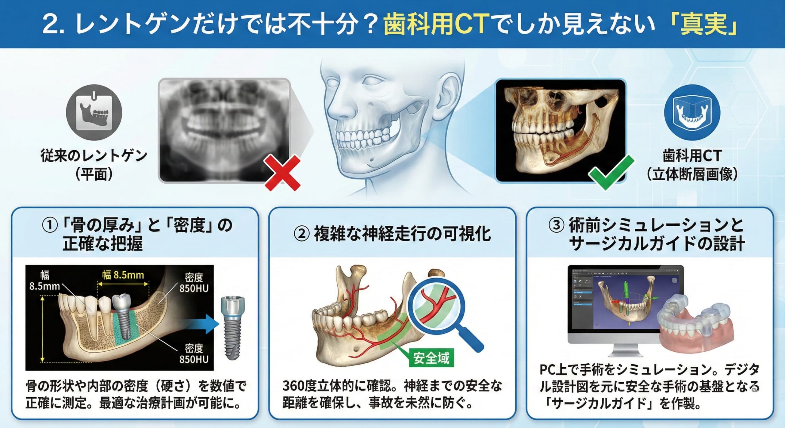 2. レントゲンだけでは不十分?歯科用CTでしか見えない「真実」