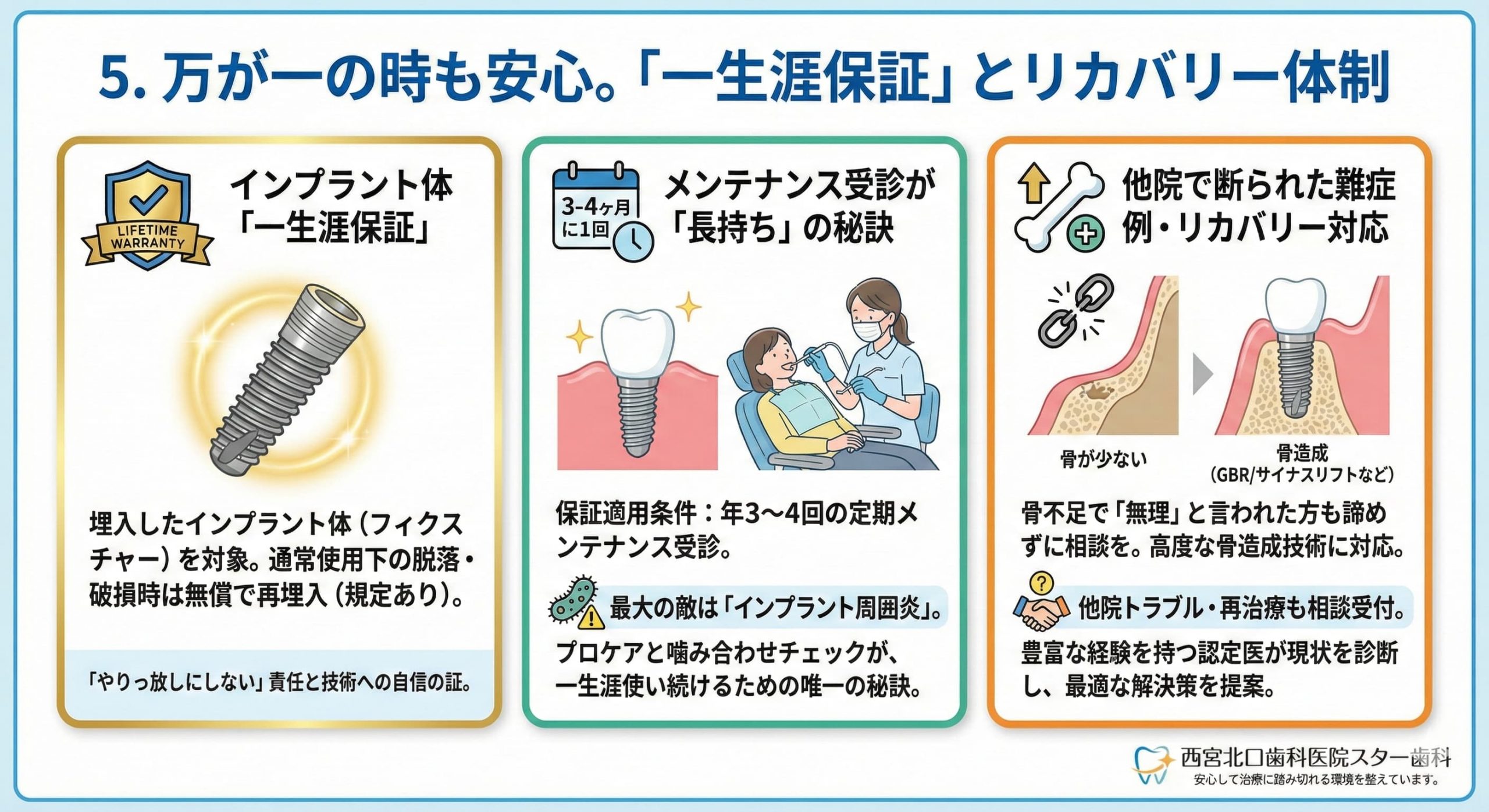 5. 万が一の時も安心。「一生涯保証」とリカバリー体制