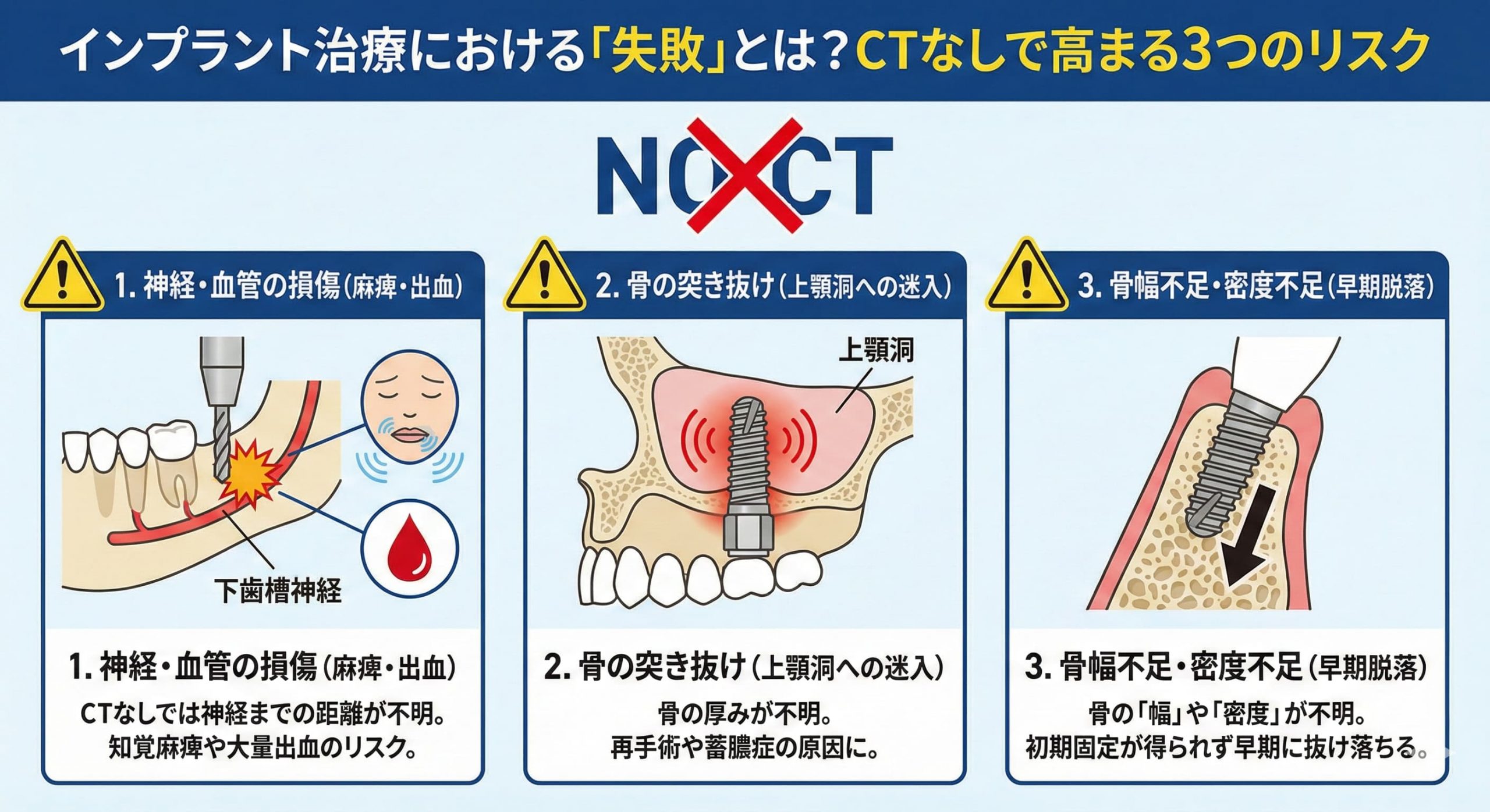 1. インプラント治療における「失敗」とは?CTなしで高まる3つのリスク