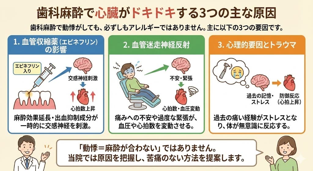 1. 歯科麻酔で心臓がドキドキする3つの主な原因