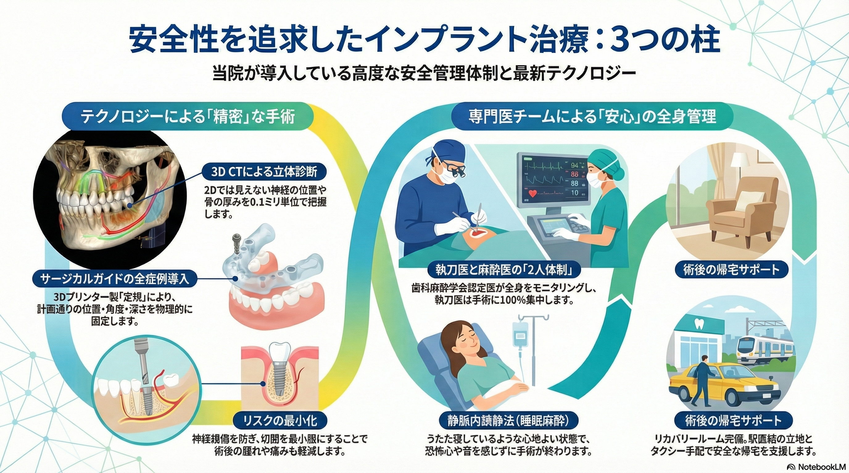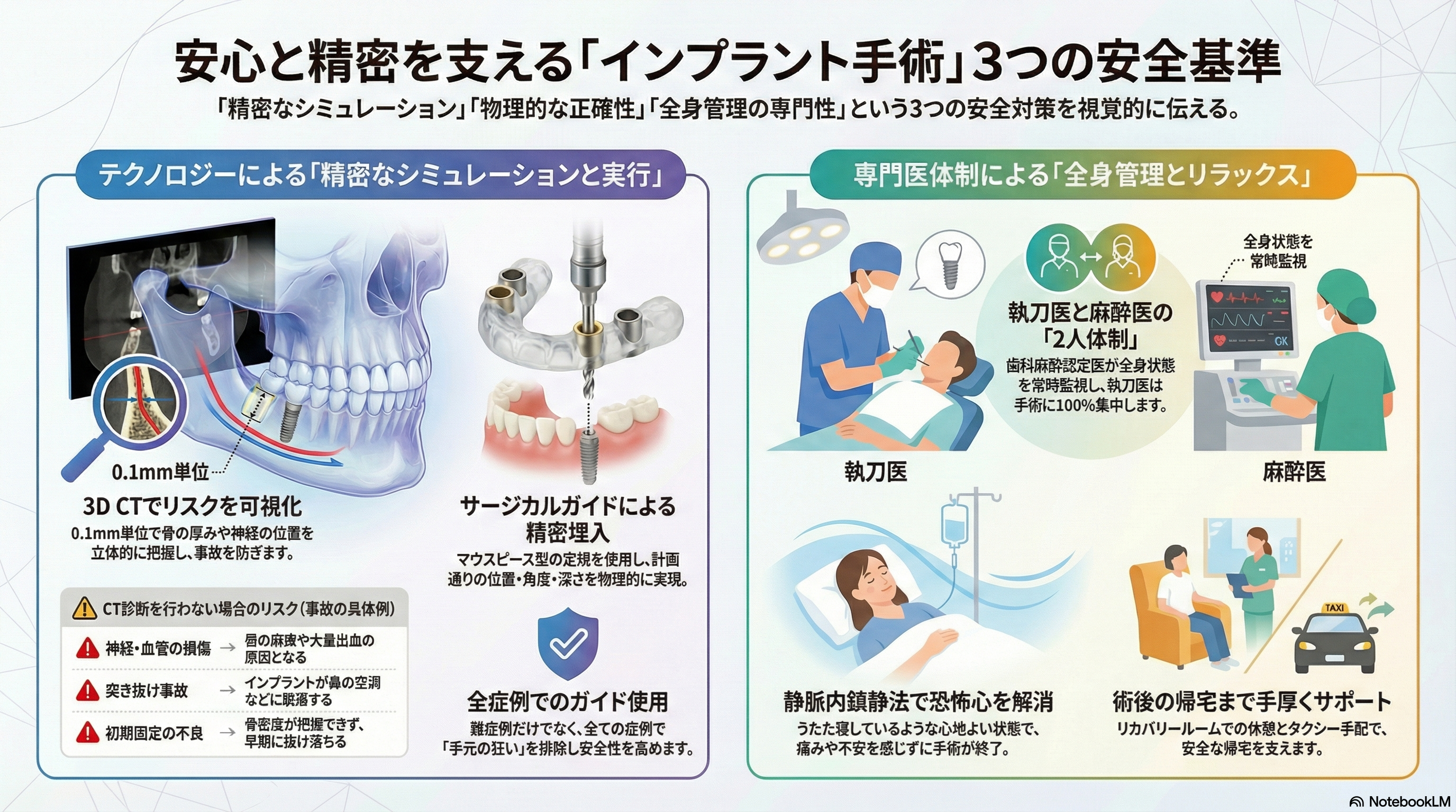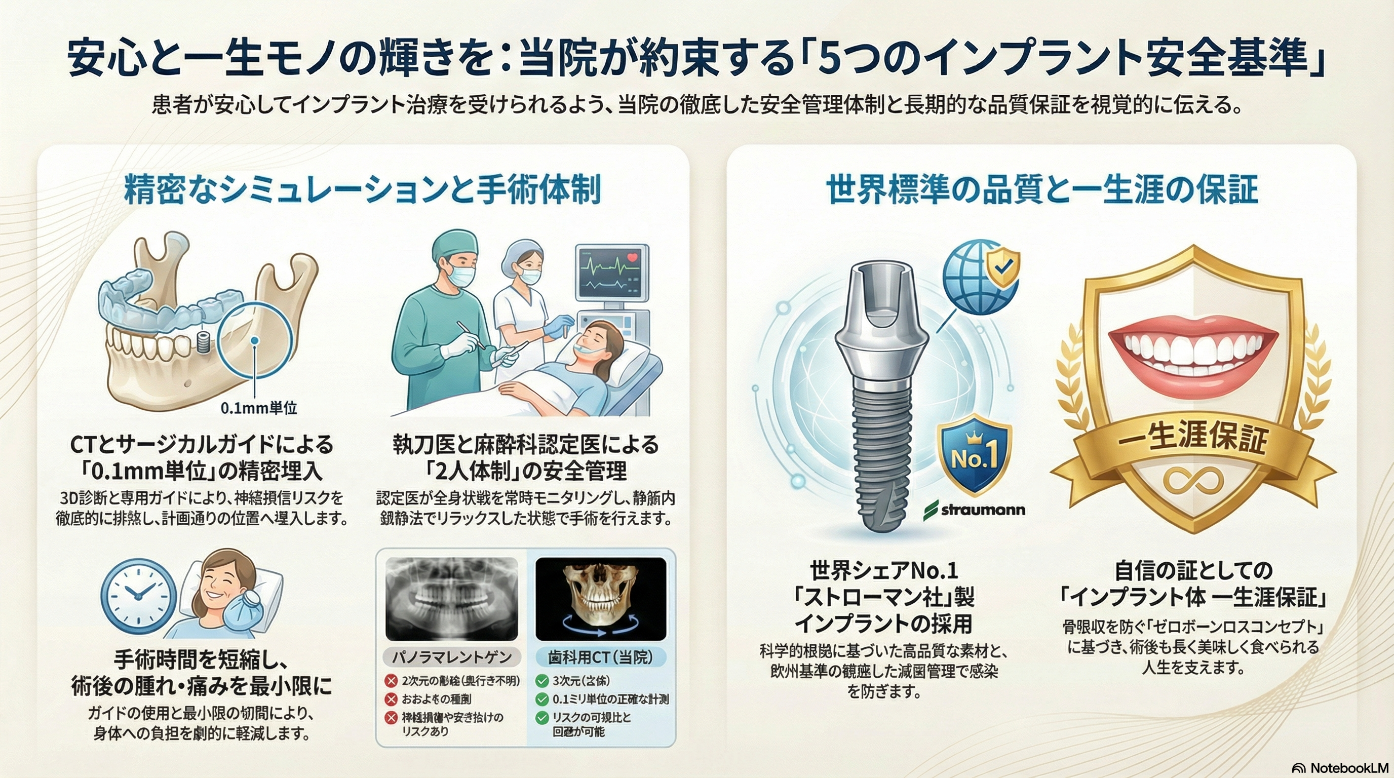 インプラント治療における「安全」とは、単に事故が起きないことだけではありません。