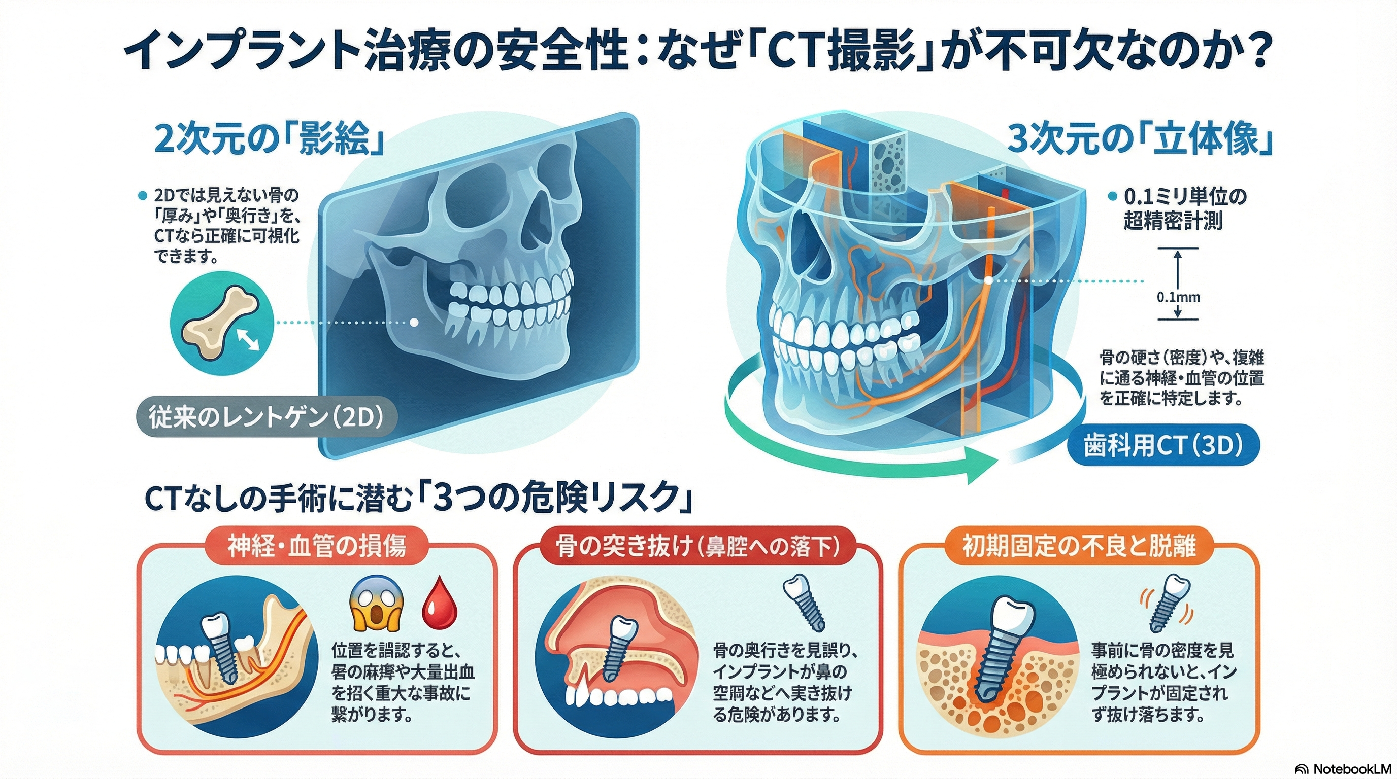 1. なぜインプラント治療に「CT撮影」が不可欠なのか?