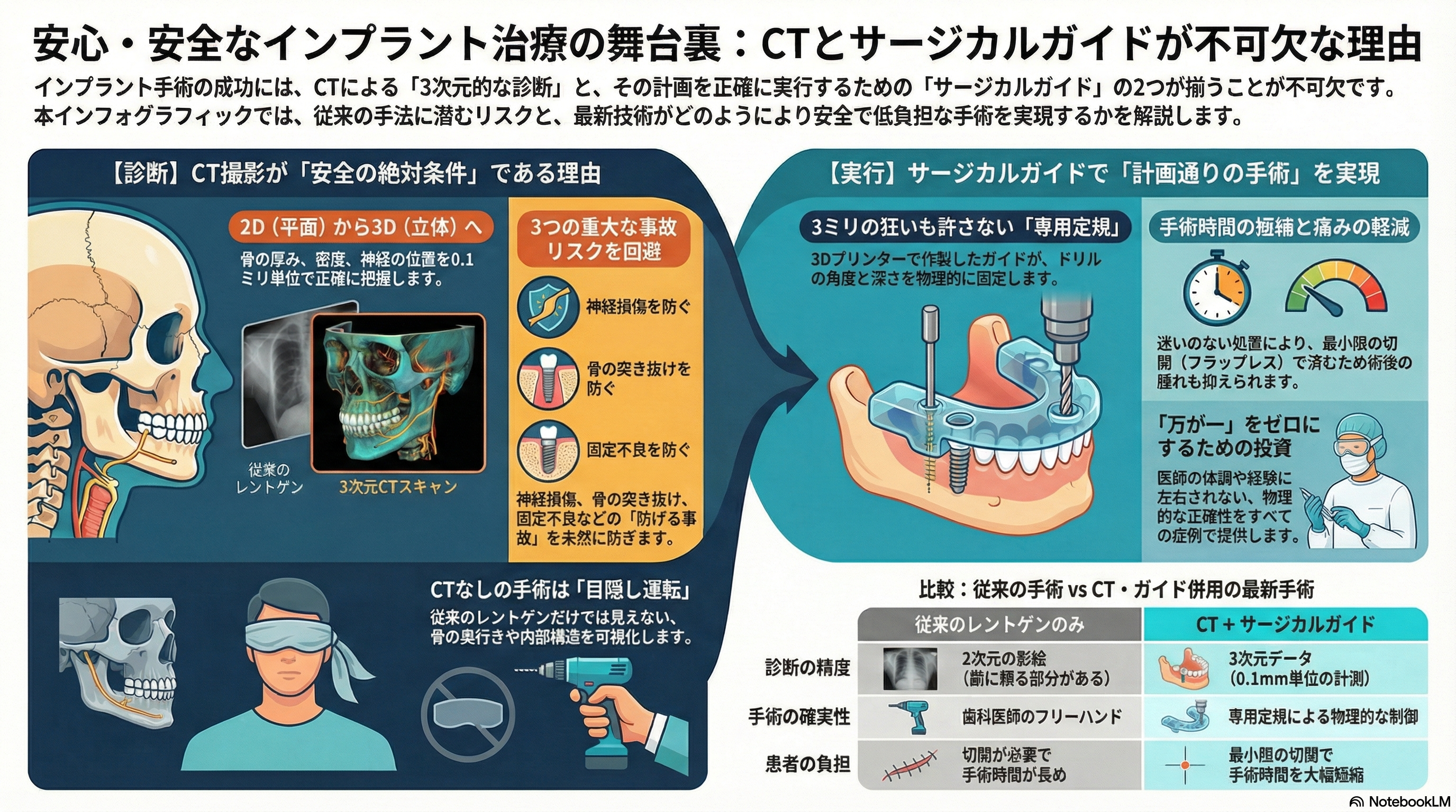 2. CTだけでは不十分?当院が「サージカルガイド」をほぼ全てのケースで使う理由