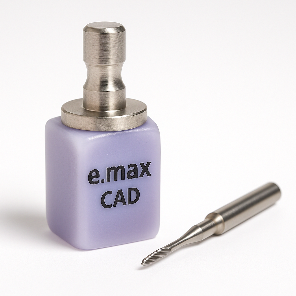 1Dayセラミック治療では、即日加工できる専用ブロック(例:e.max CAD)を使用しますが、この素材には色や透明感の再現に限界があります。