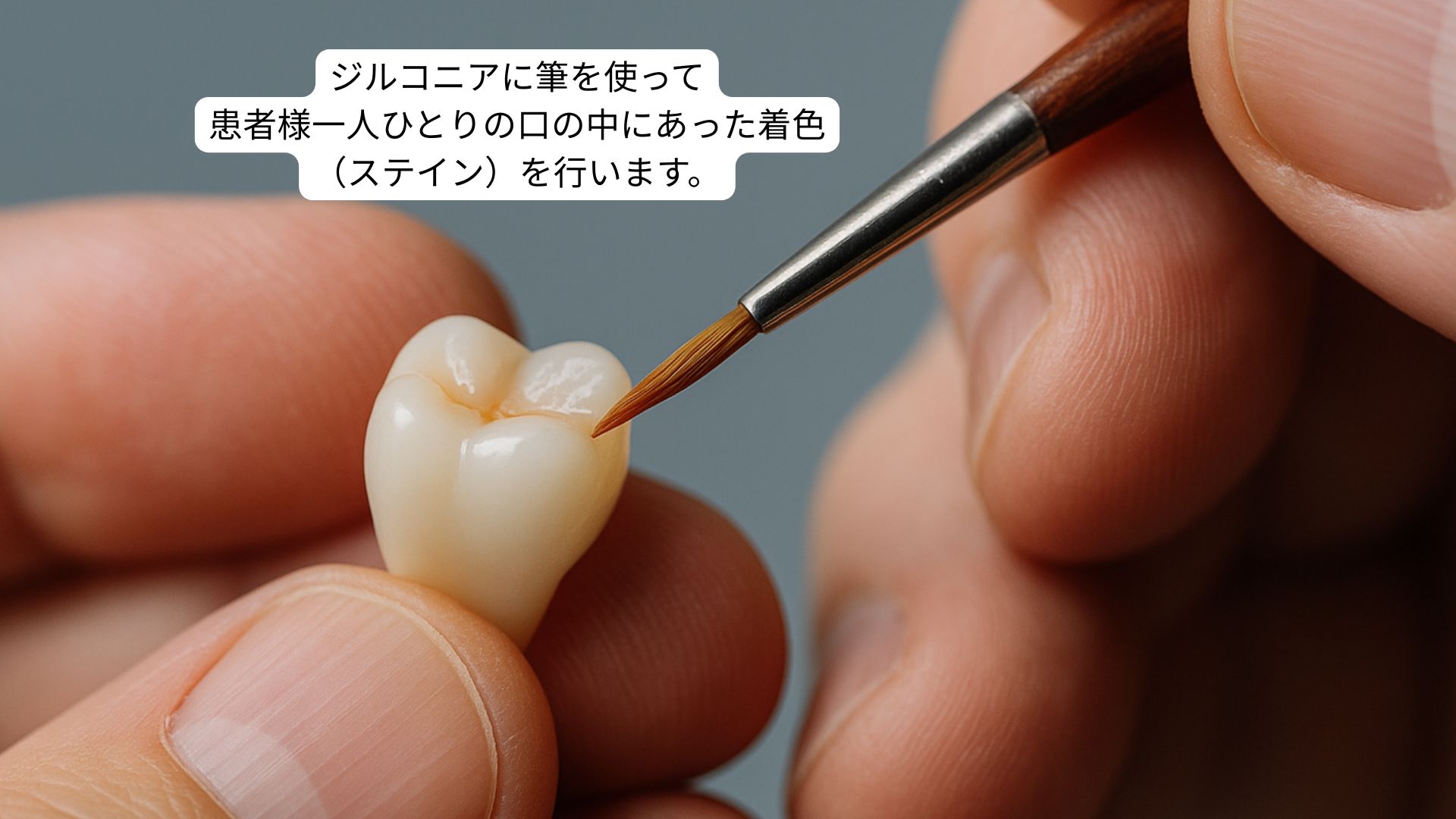 当院では、ジルコニアを使用する際は必ず技工所での焼成・ステイン・レイヤリングを行い、部位や光の条件に合わせて色調を調整しています。