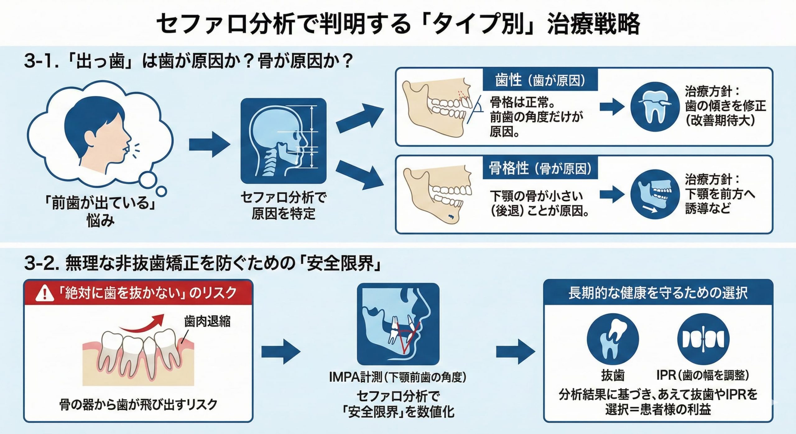 3. セファロ分析で判明する「タイプ別」治療戦略